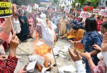 मातृशक्ति ने कांग्रेस एवं उनके सहयोगी दलों का पुतला दहन कर जताया आक्रोश