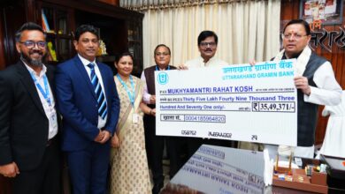 उत्तरांचल ग्रामीण बैंक के प्रतिनिधियों ने सीएम को मुख्यमंत्री राहत कोष के लिए सौंपा 35,49,371 का चेक