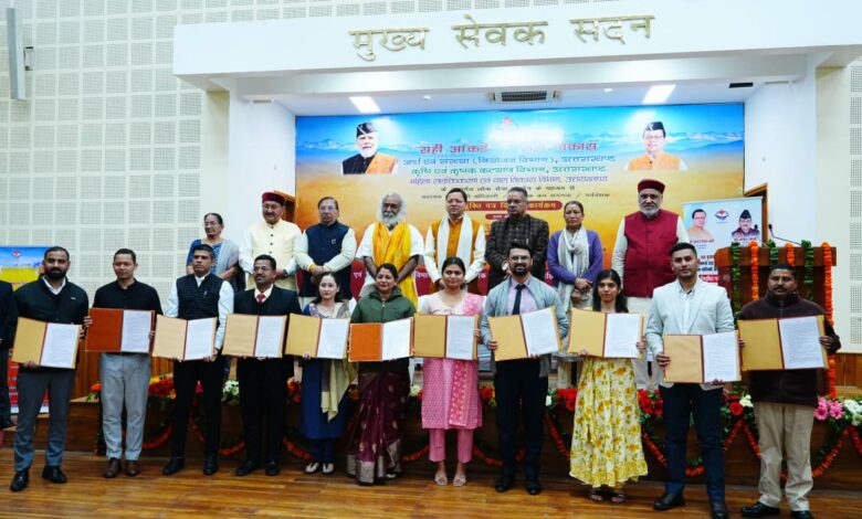 देहरादून। मुख्यमंत्री पुष्कर सिंह धामी ने गुरूवार को मुख्यमंत्री कैम्प कार्यालय स्थित मुख्य सेवक सदन में आयोजित कार्यक्रम में लोक सेवा आयोग के माध्यम से चयनित अर्थ एवं संख्या, कृषि एवं उद्यान तथा महिला सशक्तिकरण एवं बाल विकास विभाग के 178 अभ्यर्थियों को नियुक्ति पत्र प्रदान किए। जिसमें अर्थ एवं संख्या विभाग के 117, कृषि विभाग के 12 उद्यान विभाग के 30 तथा महिला सशक्तिकरण एवं बाल विकास विभाग के 19 अभ्यर्थी शामिल है। उन्होंने नवनियुक्त अभ्यर्थियों को बधाई देते हुए विश्वास व्यक्त किया कि सभी ईमानदारी, निष्ठा एवं समर्पण के साथ दायित्वों का निर्वहन कर उत्तराखंड को विकसित, आत्मनिर्भर एवं देश के अग्रणी राज्यों में शामिल करने के संकल्प को साकार करने में महत्वपूर्ण भूमिका निभाएँगे।