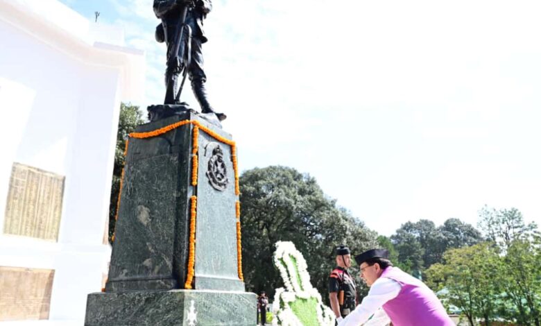 देहरादून। मुख्यमंत्री पुष्कर सिंह धामी ने रविवार को लैंसडाउन, पौड़ी गढ़वाल में आयोजित शहीद सम्मान समारोह कार्यक्रम में प्रतिभाग किया। मुख्यमंत्री ने लैंसडाउन की पावन धरती से शहीदों की अमर वीरगाथाओं और उनके सर्वोच्च बलिदान को नमन किया। मुख्यमंत्री ने शहीदों के परिजनों एवं आश्रितों को ताम्रपत्र और अंगवस्त्र भेंटकर उन्हें सम्मानित किया। उन्होंने आर्मी बैंड का निरीक्षण कर आर्मी जवानों को शुभकामनाएं भी दीं। मुख्यमंत्री ने अमर शहीद गब्बर सिंह नेगी मेमोरियल में उनकी प्रतिमा पर पुष्पचक्र अर्पित कर श्रद्धांजलि दी। उन्होंने कहा वीर गब्बर सिंह नेगी जैसे अमर सपूतों के कारण ही आज देश सुरक्षित है। मुख्यमंत्री ने विभिन्न जनपदों के शहीदों के आंगन की पवित्र मिट्टी से भरे ताम्र कलशों के सम्मुख दीप प्रज्ज्वलित कर वीर शहीदों की स्मृति में पुष्पांजलि अर्पित की। इस दौरान सभी ने मौन रखकर शहीदों के प्रति कृतज्ञता व्यक्त की। गौरतलब है कि इन ताम्र कलशों में एकत्रित शहीदों के आंगन की पावन माटी को देहरादून में बन रहे भव्य सैन्य धाम में ले जाया जाएगा।