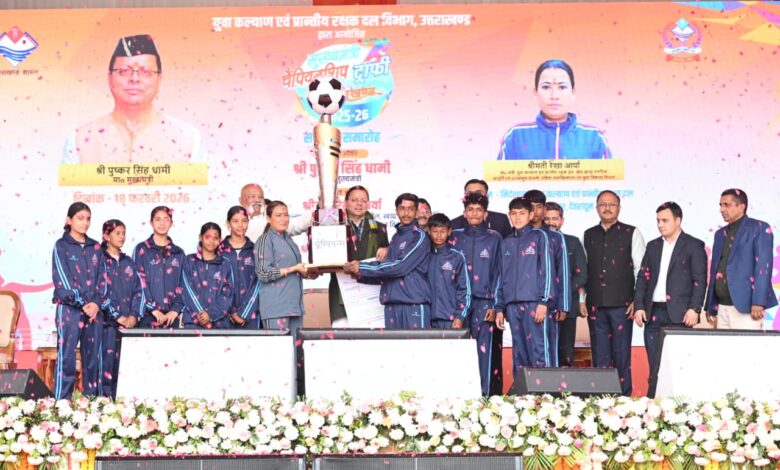 देहरादून। मुख्यमंत्री पुष्कर सिंह धामी ने बुधवार को ननूरखेड़ा, देहरादून में मुख्यमंत्री चैंम्पियनशिप ट्रॉफी 2025-26 के समापन समारोह में प्रतिभाग किया। इस अवसर पर मुख्यमंत्री ने देहरादून जनपद को विजेता ट्रॉफी एवं 05 लाख रुपये का चेक प्रदान किया। मुख्यमंत्री ने कहा कि यह भव्य समापन केवल एक प्रतियोगिता का अंत नहीं है, बल्कि उत्तराखंड के उज्ज्वल खेल भविष्य की नई शुरुआत है। खेल आयोजन आज हमारे गाँव-गाँव, न्याय पंचायतों और दूरस्थ पहाड़ी क्षेत्रों में छिपी खेल प्रतिभाओं को पहचान देने का एक सशक्त माध्यम बन चुका है। उत्तराखंड में खेल प्रतियोगिताएं अब जनचेतना का महत्वपूर्ण माध्यम बन चुकी हैं। उन्होंने कहा कि उत्तराखंड अब देवभूमि के साथ-साथ खेलभूमि भी बन चुका है। इस आयोजन में 11 करोड़ रुपये की पुरस्कार राशि डीबीटी के माध्यम से सीधे खिलाड़ियों के खातों में भेजी जा रही है। मुख्यमंत्री ने कहा कि प्रधानमंत्री नरेंद्र मोदी के दूरदर्शी नेतृत्व में आज भारत खेल जगत में नई ऊँचाइयों को छू रहा है। ‘खेलो इंडिया’ और ‘फिट इंडिया मूवमेंट’ जैसे अभियानों के माध्यम से देश में खेलों की संस्कृति को नई ऊर्जा मिली है। देश में फिटनेस एक जन आंदोलन बन चुकी है। हमारी युवा पीढ़ी खेलों के प्रति नए उत्साह और समर्पण के साथ आगे बढ़ रही है। आज भारत ओलंपिक, पैरालंपिक, एशियाई खेलों और कॉमनवेल्थ गेम्स जैसे अंतरराष्ट्रीय मंचों पर ऐतिहासिक प्रदर्शन कर रहा है। हमारे खिलाड़ियों ने रिकॉर्ड संख्या में पदक जीतकर देश का गौरव बढ़ाया है और कई खेलों में भारत ने विश्व पटल पर अपनी मजबूत पहचान स्थापित की है। प्रधानमंत्री के नेतृत्व में खेलों को नई प्राथमिकता मिली है। खिलाड़ियों को बेहतर प्रशिक्षण, संसाधन और सम्मान मिला है।