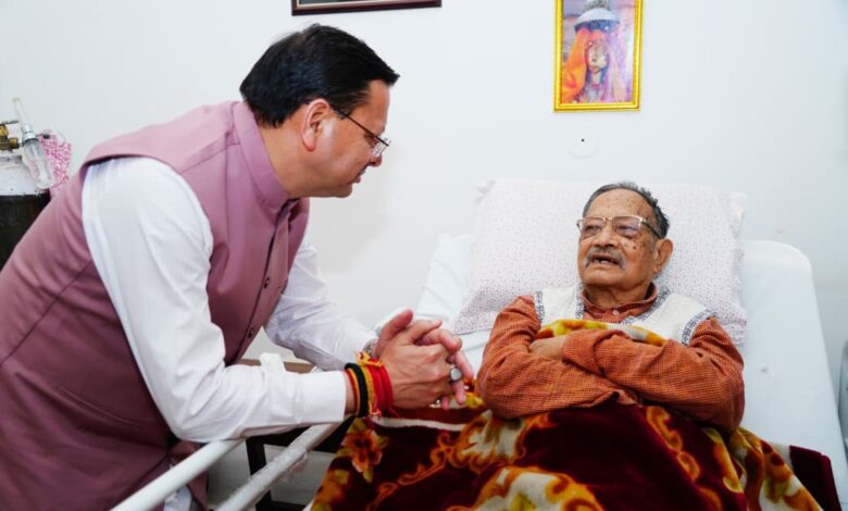 सीएम धामी पहुंचे पूर्व मुख्यमंत्री भुवन चंद्र खंडूरी के निवास पर, दीपावली की बधाई दी