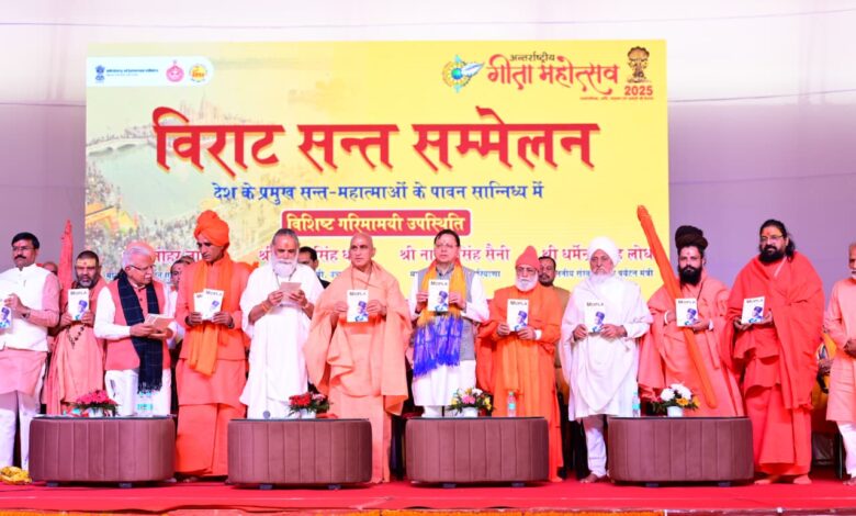देहरादून। मुख्यमंत्री पुष्कर सिंह धामी ने शनिवार को कुरुक्षेत्र, हरियाणा में अन्तर्राष्ट्रीय गीता महोत्सव में प्रतिभाग किया। इस अवसर पर अपने संबोधन में मुख्यमंत्री ने कहा कि धर्म क्षेत्र कुरुक्षेत्र की पवित्र भूमि पर भगवान श्रीकृष्ण ने अर्जुन को जो दिव्य उपदेश प्रदान किया, वही श्रीमद्भगवद्गीता के रूप में मानवता का शाश्वत ज्ञान बनकर पूरे विश्व को दिशा दिखा रहा है। इस भूमि से धर्म, कर्तव्य, सत्य, निष्काम कर्म और आत्मोन्नति का संदेश सम्पूर्ण मानव समाज में प्रवाहित हुआ। इस भव्य महोत्सव के माध्यम से गीता के संदेश को जन-जन तक पहुँचाने के लिए उन्होंने हरियाणा सरकार एवं स्वामी ज्ञानानंद जी महाराज के प्रति अपनी कृतज्ञता प्रकट की।