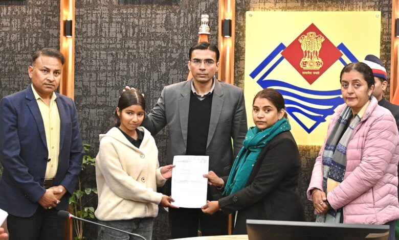 देहरादून। जिलाधिकारी सविन बंसल विषम परिस्थितियों से जूझ रही होनहार बेटियों की शिक्षा को पुनर्जीवित कर उनके उज्ज्वल भविष्य का मार्ग प्रशस्त कर रहे हैं। जिला प्रशासन ऐसे परिवारों के लिए संबल बनकर उभर रहा है, जहाँ संसाधनों की कमी के बावजूद बेटियों के सपनों में उड़ान भरने का जज़्बा मौजूद है। मुख्यमंत्री के मार्गदर्शन में जिला प्रशासन बेटियों की शिक्षा को नया जीवन दे रहा है। इसी क्रम में जिलाधिकारी द्वारा जीविका अंथवाल (बी.कॉम द्वितीय वर्ष) एवं नन्दिनी राजपूत (कक्षा 11) को सीएसआर फंड से 1-1 लाख रुपये की आर्थिक सहायता प्रदान की गई है। दोनों बेटियों की शिक्षा को विगत सप्ताह प्रोजेक्ट ‘नंदा-सुनंदा’ के माध्यम से पुनर्जीवित की गई है।