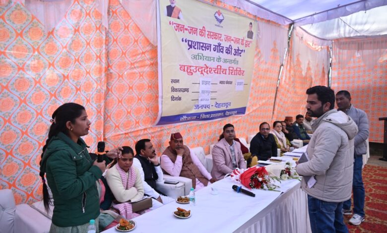 देहरादून। प्रदेश सरकार की महत्वाकांक्षी पहल ‘जन-जन की सरकार, जन-जन के द्वार, प्रशासन गांव की ओर’ अभियान के तहत मंगलवार को सहसपुर ब्लॉक की न्याय पंचायत झांझरा में तहसीलदार विवेक राजौरी की अध्यक्षता में बहुउद्देशीय शिविर का आयोजन किया गया। शिविर में ग्रामीणों की समस्याओं का मौके पर निस्तारण किया गया तथा विभागीय योजनाओं के माध्यम से 613 लोगों को लाभान्वित किया गया। इस अवसर पर सहसपुर विधायक सहदेव पुंडीर, जिला अध्यक्ष मीता सिंह एवं अन्य जनप्रतिनिधि उपस्थित रहे।