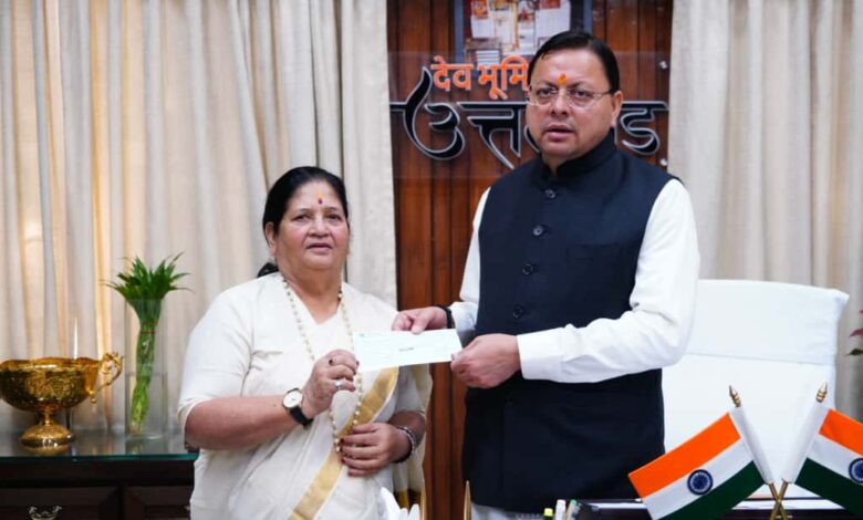 देहरादून। प्रसिद्ध पर्वतारोही एवं पद्म भूषण सम्मान प्राप्त बछेंद्री पाल ने शनिवार को मुख्यमंत्री राहत कोष के लिए 10 लाख रुपए का चेक प्रदान किया। यह चेक उनकी ओर से राज्य महिला उद्यमिता परिषद की उपाध्यक्ष विनोद उनियाल द्वारा मुख्यमंत्री को सौंपा गया। मुख्यमंत्री ने बछेंद्री पाल के इस सामाजिक योगदान के प्रति आभार व्यक्त करते हुए कहा कि संकट की घड़ी में सहयोग एवं सेवा की भावना ही समाज को जोड़ती है। उन्होंने कहा कि ऐसे योगदान न केवल ज़रूरतमंदों की मदद करते हैं, बल्कि जनहित के कार्यों के प्रति लोगों को प्रेरित भी करते हैं।