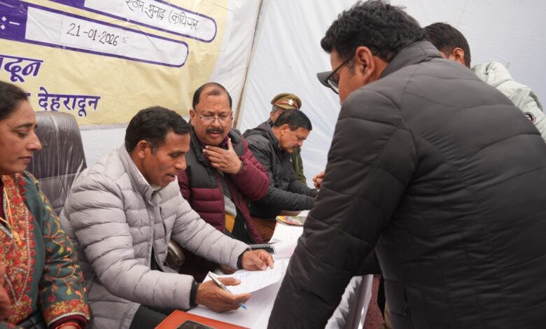 देहरादून। प्रदेश सरकार की महत्वाकांक्षी पहल ‘जन-जन की सरकार, जन-जन के द्वार, प्रशासन गांव की ओर’ अभियान के तहत बुधवार को चकराता ब्लॉक की सुदूरवर्ती क्षेत्र राजकीय इंटर कॉलेज कथियान में उप जिलाधिकारी प्रेम लाल की अध्यक्षता में जनसेवा शिविर का आयोजन किया गया। शिविर में ग्रामीणों की समस्याओं का मौके पर निस्तारण किया गया तथा विभागीय योजनाओं के माध्यम से 1086 से अधिक लोगों को लाभान्वित किया गया। उप जिलाधिकारी ने कहा कि जन-जन की सरकार, जन-जन के द्वार अभियान से सरकार का उद्देश्य है कि लोगों को इन शिविरों में जनकल्याणकारी योजनाओं से मौके पर ही लाभान्वित किया जाए। ग्रामीणों की समस्याओं को सुनकर उनका प्राथमिकता पर निस्तारण हो। उन्होंने कहा कि माननीय मुख्यमंत्री के निर्देशों पर शिविर में ही लोगों के सभी जरूरी प्रमाण पत्र भी बनाए जा रहे हैं।