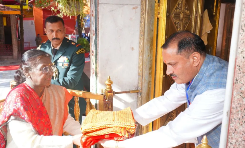 नैनीताल। राष्ट्रपति श्रीमती द्रौपदी मुर्मू ने अपने नैनीताल प्रवास के दौरान मंगलवार प्रातः शक्तिपीठ श्री मां नयना देवी मंदिर में पहुंचकर मां नयना देवी की पूजा-अर्चना की तथा राष्ट्र की सुख, शांति और खुशहाली की कामना की। मंदिर आगमन पर मंदिर समिति के सदस्यों ने माननीय राष्ट्रपति श्रीमती मुर्मू का पुष्पगुच्छ भेंट कर स्वागत एवं अभिनंदन किया। इस धार्मिक अनुष्ठान के दौरान उत्तराखंड के राज्यपाल लेफ्टिनेंट जनरल (सेनि) गुरमीत सिंह भी विशेष रूप से मौजूद रहे।