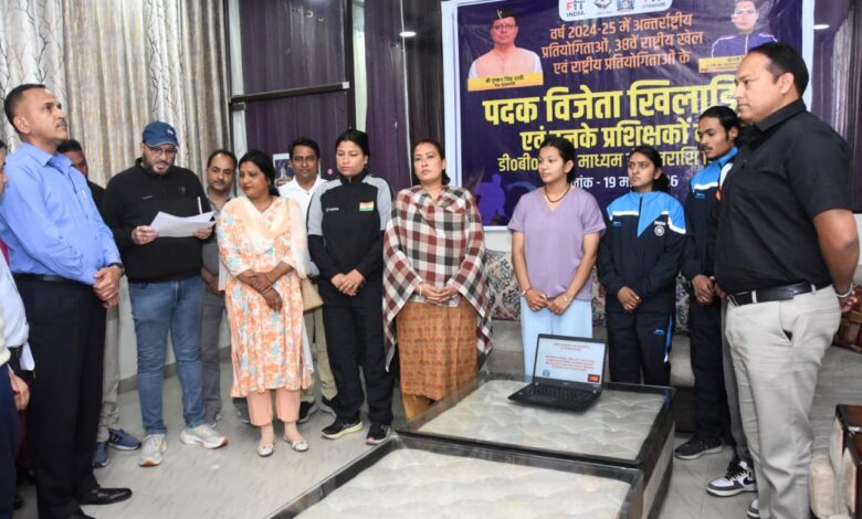 देहरादून। विभिन्न राष्ट्रीय एवं अंतरराष्ट्रीय खेल स्पर्धाओं में पदक जीतने वाले प्रदेश के खिलाड़ियों और प्रशिक्षकों को 3 करोड़ से ज्यादा की इनामी धन राशि जारी की गई है। बृहस्पतिवार को यमुना कॉलोनी स्थित कैंप कार्यालय में खेल मंत्री रेखा आर्या ने यह धनराशि खिलाड़ियों के खातों में डीबीटी ट्रांसफर की।