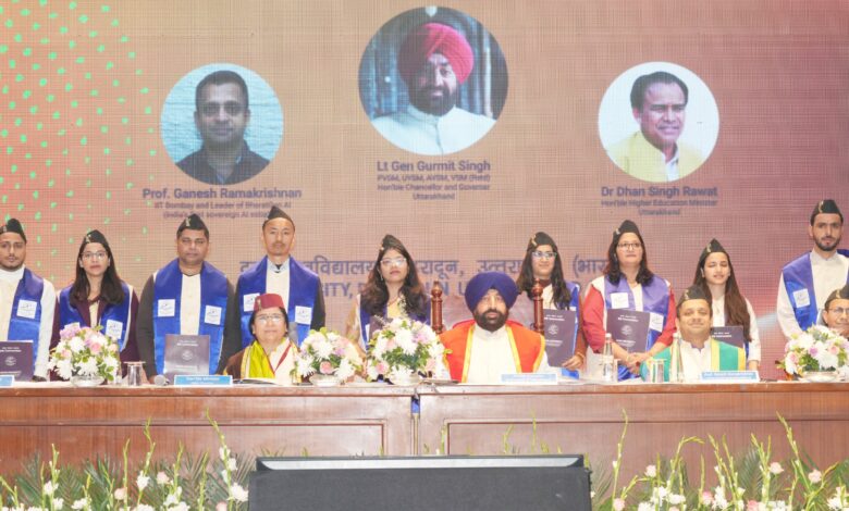 विश्वविद्यालय द्वारा इस वर्ष दीक्षांत समारोह की विषयवस्तु को कृत्रिम बुद्धिमत्ता (एआई) पर केंद्रित किया गया, जिस पर प्रकाश डालते हुए राज्यपाल ने तकनीक और विशेष रूप से आर्टिफिशियल इंटेलिजेंस के संदर्भ में कहा कि वर्तमान समय का यह एक सशक्त माध्यम है, जो शिक्षा, अनुसंधान और कार्यशैली को नई दिशा दे रहा है। अपने सम्बोधन में राज्यपाल ने दीक्षांत समारोह के मुख्य वक्ता एवं आईआईटी बॉम्बे के प्रोफेसर गणेश रामकृष्णन द्वारा ‘ठींतंजळमद’ जैसी स्वदेशी एआई पहल का उल्लेख करते हुए कहा कि भारतीय भाषाओं और संस्कृति के अनुरूप तकनीकी समाधान विकसित करने से तकनीक वास्तव में जन-जन तक पहुँचती है। राज्यपाल ने दून विश्वविद्यालय सहित देश की अमृत पीढ़ी के युवाओं से आह्वान किया कि वे एआई का नैतिक, मानवीय और समाजोपयोगी उपयोग करते हुए उत्तराखण्ड की भौगोलिक चुनौतियों और स्थानीय समस्याओं के समाधान हेतु नवाचार-आधारित कार्य करें। इस अवसर पर राज्यपाल ने कहा कि विकसित भारत /2047 का लक्ष्य केवल आर्थिक प्रगति नहीं, बल्कि सामाजिक न्याय, सांस्कृतिक गौरव और मानवीय मूल्यों से युक्त राष्ट्र-निर्माण का संकल्प है, जिसमें युवाओं की भूमिका निर्णायक होगी। उन्होंने राष्ट्रीय शिक्षा नीति-2020 को दूरदर्शी पहल बताते हुए कहा कि इसका उद्देश्य ‘जॉब सीकर’ नहीं, बल्कि ‘जॉब क्रिएटर’ तैयार करना है, और दून विश्वविद्यालय इस दिशा में सार्थक प्रयास कर रहा है। उत्तराखण्ड की भौगोलिक चुनौतियों का उल्लेख करते हुए राज्यपाल ने कहा कि पलायन और आपदा-संवेदनशीलता जैसी समस्याओं का समाधान स्थानीय नवाचार, स्वरोजगार और सतत विकास में निहित है। उन्होंने छात्राओं की बड़ी भागीदारी पर विशेष प्रसन्नता व्यक्त करते हुए कहा कि महिलाओं की प्रगति ही राज्य की वास्तविक प्रगति है। राज्यपाल ने शिक्षा के वास्तविक उद्देश्य पर प्रकाश डालते हुए कहा कि शिक्षा केवल सूचना देने का माध्यम नहीं, बल्कि चरित्र निर्माण की प्रक्रिया है। उन्होंने सत्य, ईमानदारी, अनुशासन और परोपकार को जीवन की सफलता के मूल स्तंभ बताते हुए विद्यार्थियों से आह्वान किया कि वे किसी भी प्रकार के दुर्व्यसन, नशे या डिजिटल लत से स्वयं को दूर रखें और ‘राष्ट्र प्रथम’ की भावना को अपने जीवन का मार्गदर्शक सिद्धांत बनाएं। राज्यपाल ने विद्यार्थियों को अपनी जड़ों से जुड़े रहने, समाज के कमजोर वर्गों के सशक्तीकरण के लिए कार्य करने और राष्ट्रहित को सर्वोपरि रखने का संदेश दिया। उन्होंने विश्वास व्यक्त किया कि दून विश्वविद्यालय के स्नातक जहाँ भी जाएंगे, राज्य और राष्ट्र के सच्चे दूत बनकर भारत का मान बढ़ाएंगे।
