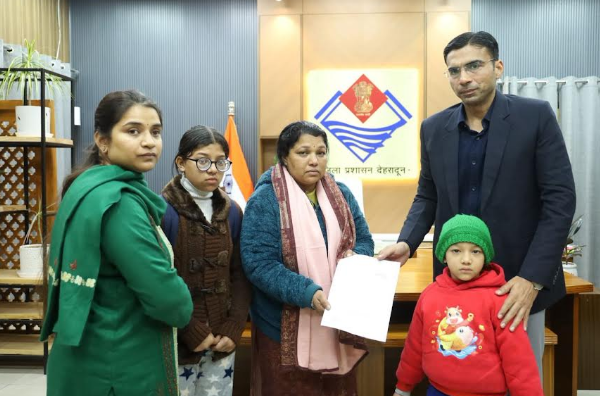 देहरादून। पति की आकस्मिक मृत्यु के बाद जीवन की कठिन परिस्थितियों से जूझ रही विधवा शांति राणा के मामले में जिला प्रशासन संवेदनशीलता के साथ आगे आया है। आर्थिक तंगी, छोटे बच्चों की जिम्मेदारी और सिर पर ऋण का बोझ, इन सबके बीच शांति राणा के लिए जिला प्रशासन ने मदद का हाथ बढ़ाया है। जिला प्रशासन ने दी सीएसआर फंड से 4 लाख की आर्थिक सहायता।