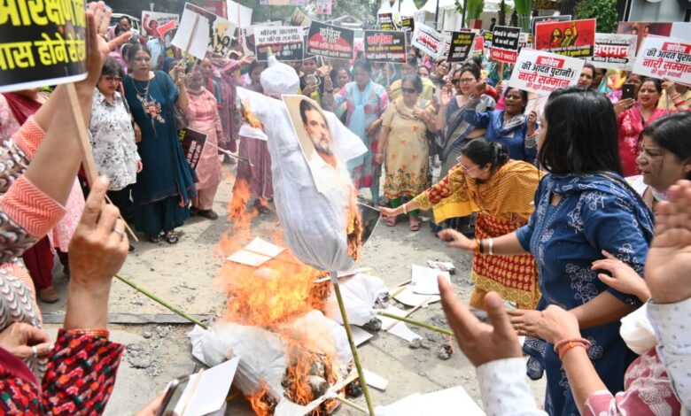 देहरादून। हाथीबड़कला में सैकड़ों महिलाओं ने कांग्रेस एवं उनके सहयोगी दलों द्वारा नारी शक्ति वंदन अधिनियम के विरोध को लेकर महिला पद यात्रा निकाली। कार्यक्रम में सैकड़ों की संख्या में महिलाओं की सहभागिता रही, जिन्होंने एकजुट होकर महिला सम्मान और अधिकारों की रक्षा का संकल्प लिया। पदयात्रा के दौरान महिलाओं ने विरोध स्वरूप नारेबाजी करते हुए कांग्रेस एवं उनके सहयोगी दलों का पुतला दहन कर अपना आक्रोश व्यक्त किया।